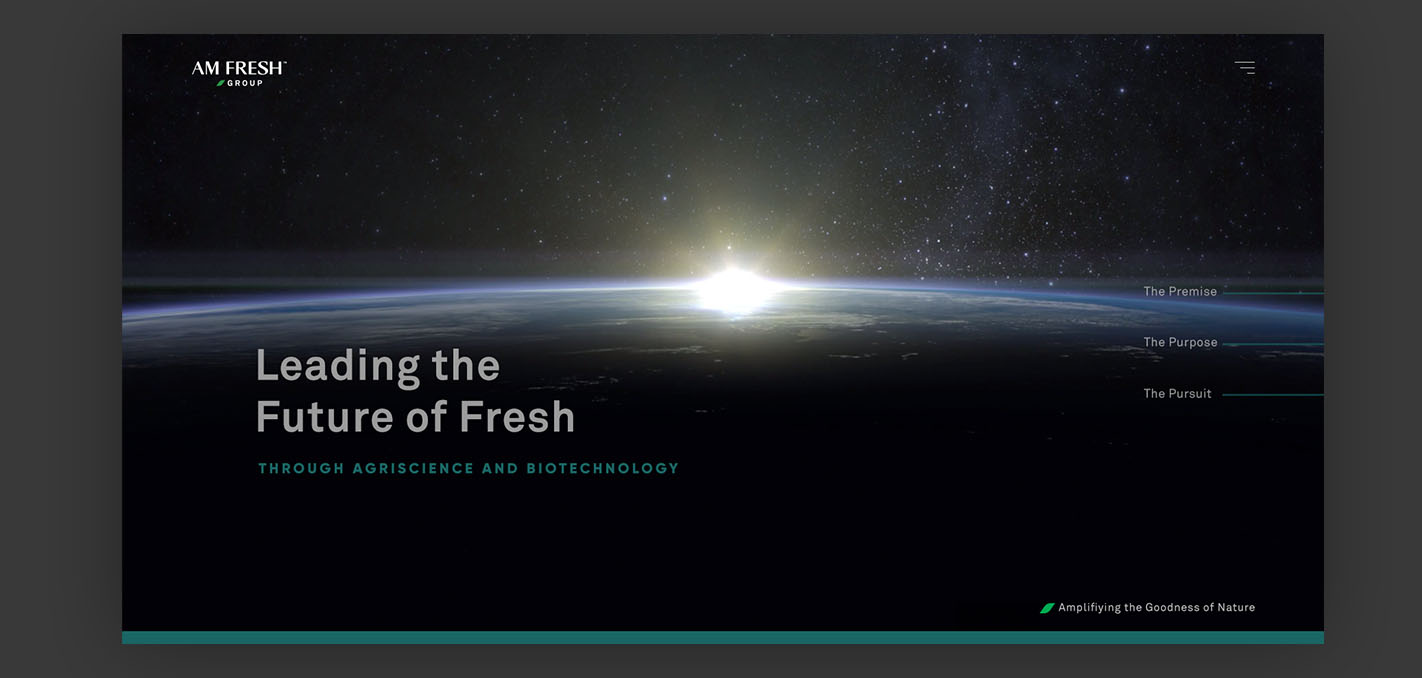 To create a website that transmits the values of the brand and a powerful and inspiring institutional video for the AM FRESH new corporate identity.