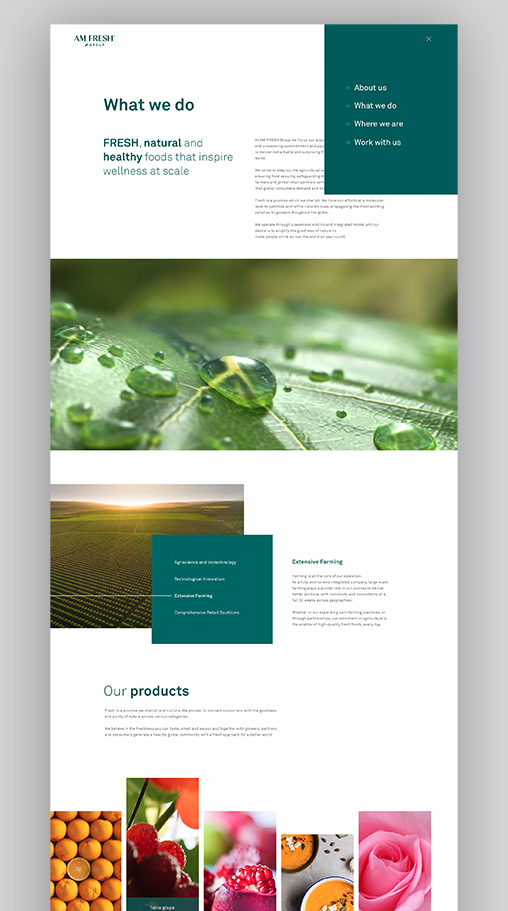 Am Fresh did a complete restructuring of its brand and contacted us to make the new website of the main group AM FRESH GROUP and an institutional video.